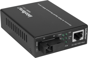 O conversor de mídia KGSD 1120 A permite a criação de enlaces de fibra óptica com até 20 km com taxa de transmissão de 1 Gbps.